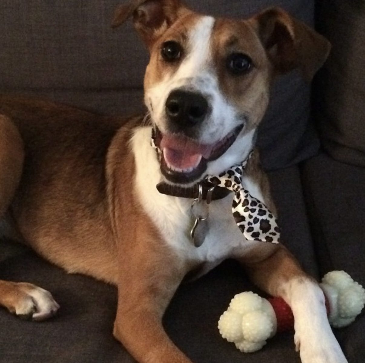 A couple months later, we ventured downtown to Chicago’s Anti-Cruelty Society, just to check out which dogs were available. We weren’t sure we’d walk out with a pet, but we hoped we would. I’ll never forget turning the corner to see a small boxer mix looking up at us with brown eyes and the most perfect little smile. It was love in an instant.